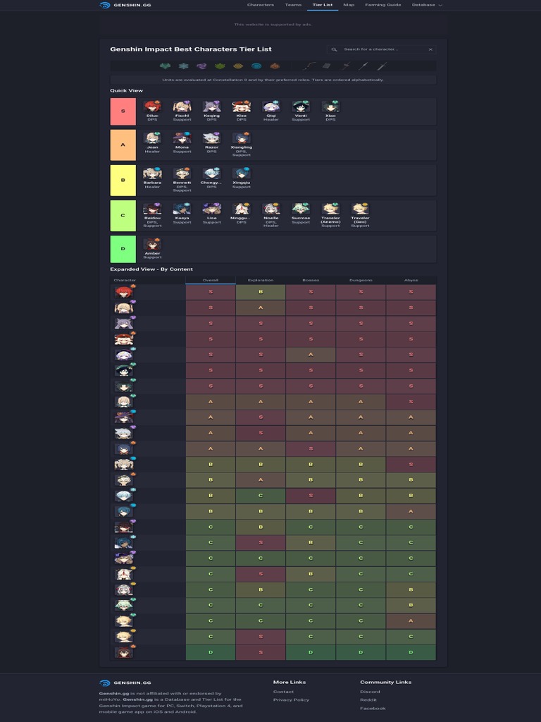 Genshin impact tier list the best and worst characters all characters ranked from the very best to amber there are currently 33 genshin impact characters available, so there's no shortage of Genshin impact main dps character tier list the main dps character in genshin impact typically deals lots of damage and is the character that will primarily carry your team inA collection of Genshin Impact tier list templates Pick a template below to see the latest Genshin Impact tier list or to create your own View the Community Rankings of each Geshin Impact template to get the most accurate tier listCreate a New Character Genshin_Impact Education Details r/Genshin_ImpactThis is the official community for Genshin Impact (原神), the latest openworld action RPG developed by miHoYo The game features a massive, gorgeous map, an elaborate elemental combat system, engaging storyline &